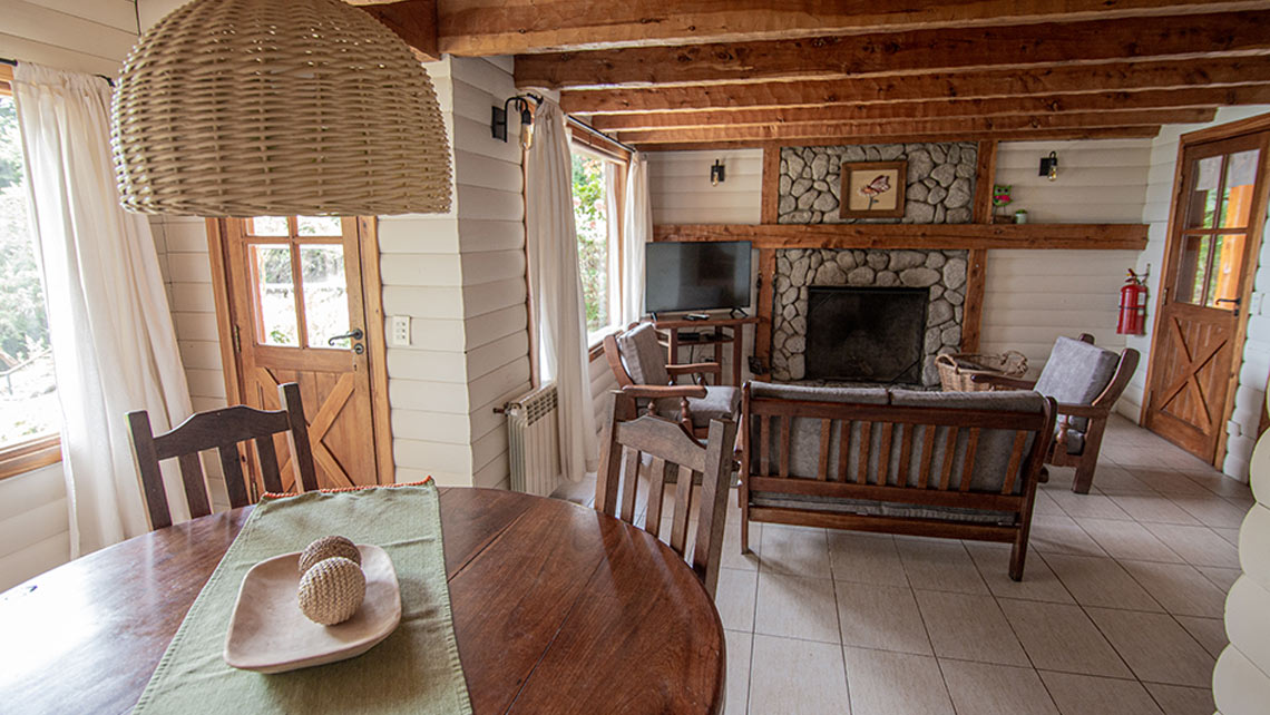 PLANTA BAJA: Living-comedor con chimenea y smart TV, cocina completa, toilette.